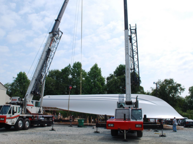 We carefully flip the hull with the help of two cranes and some massive strapping.